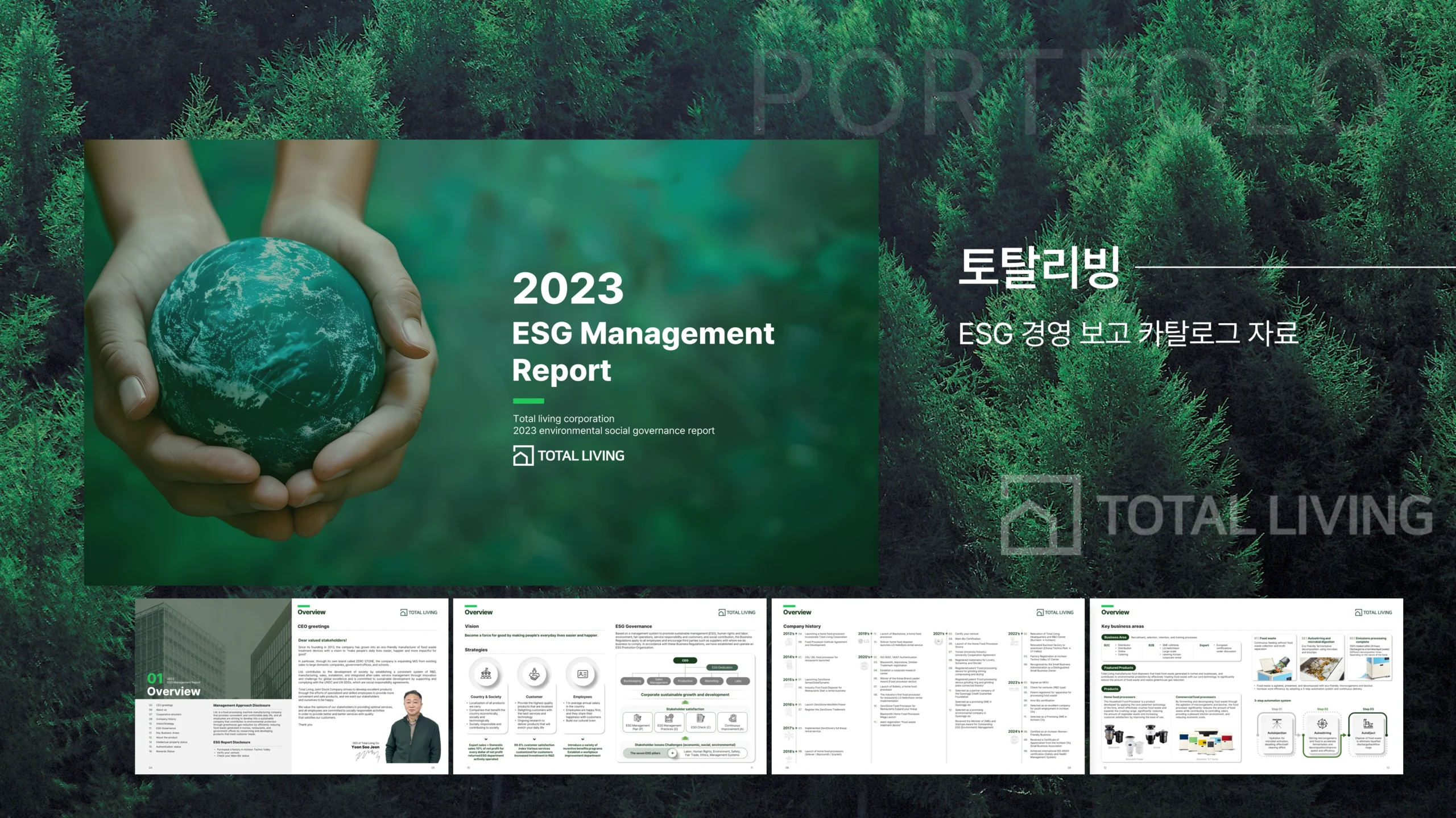 토탈리빙의 지속가능 ESG 경영 보고서 카탈로그 PPT제작.